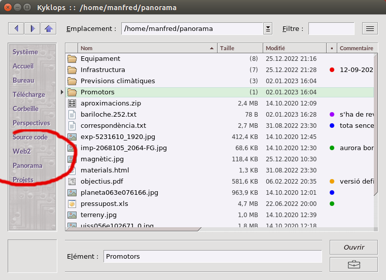 Lorsque votre arborescence de fichiers est devenue complexe, atteindre vos dossiers de travail peut être long et laborieux. Il n'est pas représentable que vous deviez faire chaque jour plus de 10 pas pour accéder au dossier sur lequel vous travaillez : cela devrait être la tâche du gestionnaire de fichiers, et c'est ce que Kyklops fera pour vous.
