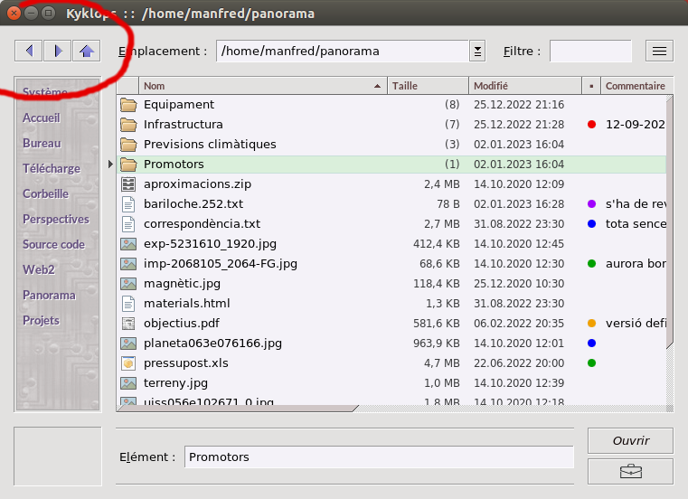 Les boutons de navigation que vous trouverez dans le coin supérieur gauche de l'interface principale de Kyklops seront votre outil de libération, car ils vous permettront de parcourir la structure de vos dossiers dans toutes les directions et de vous déplacer librement dans l'ensemble de votre système.